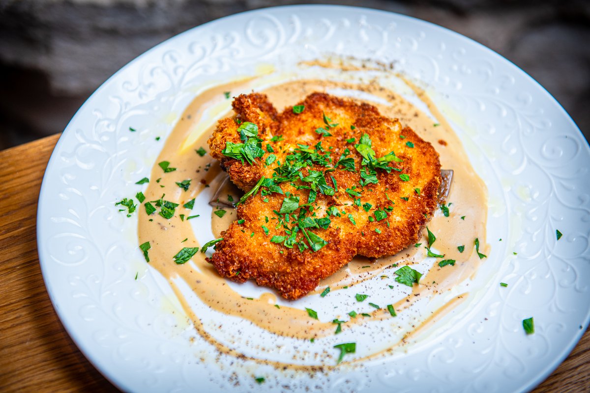 Milanese maisikana seene-marsala kastmes Corn fed chicken Milanese in mushroom marsala sauce