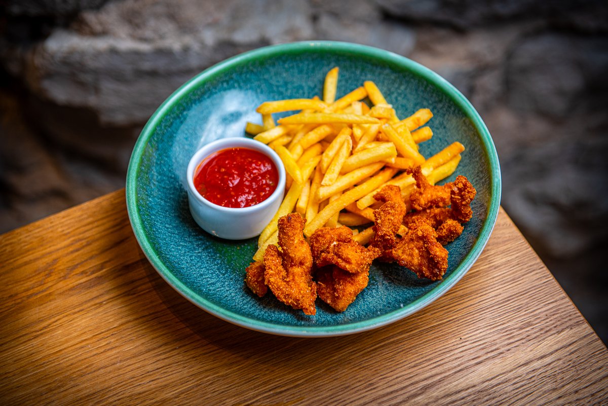 Amici kananagitsad, friikartul, tomatikaste Amici chicken tenders, french fries, tomato sauce
