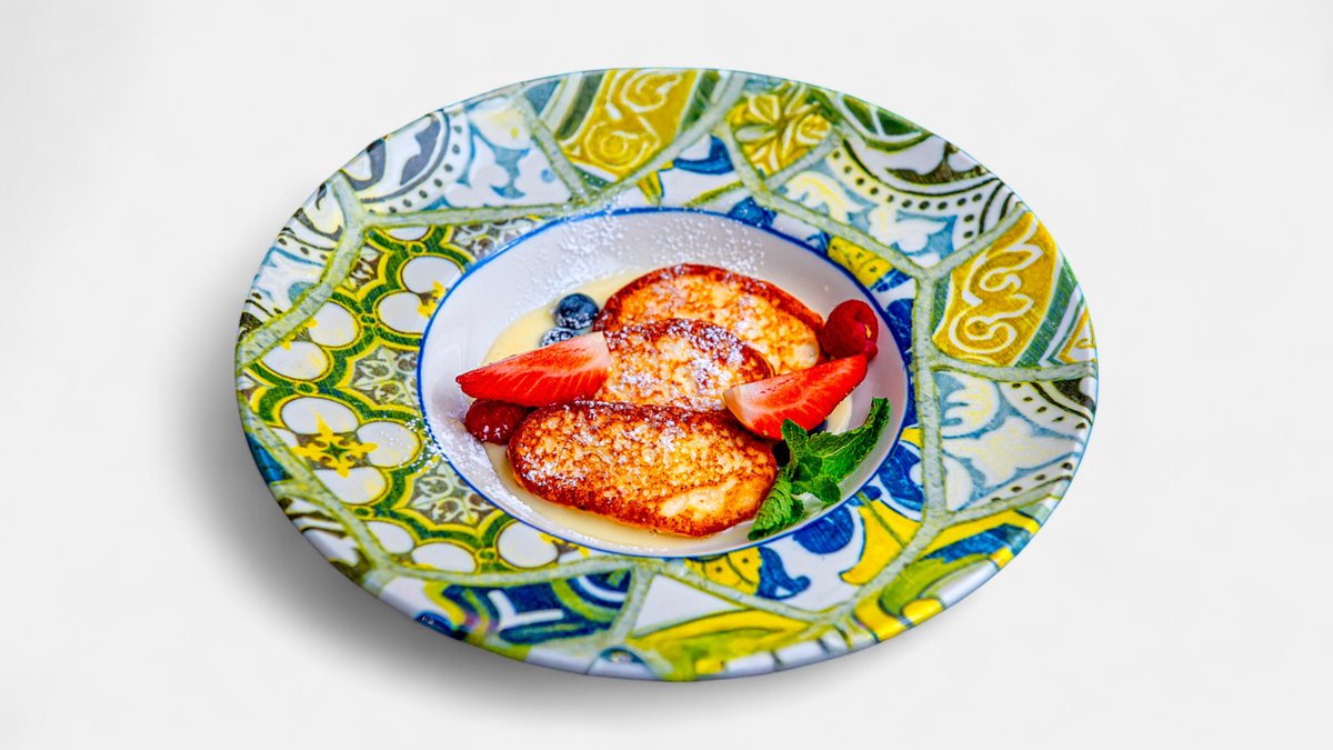 Ricotta pannkoogid valge šokolaadi kastme ja värskete marjadega Ricotta pancakes with white chocolate sauce and fresh berries