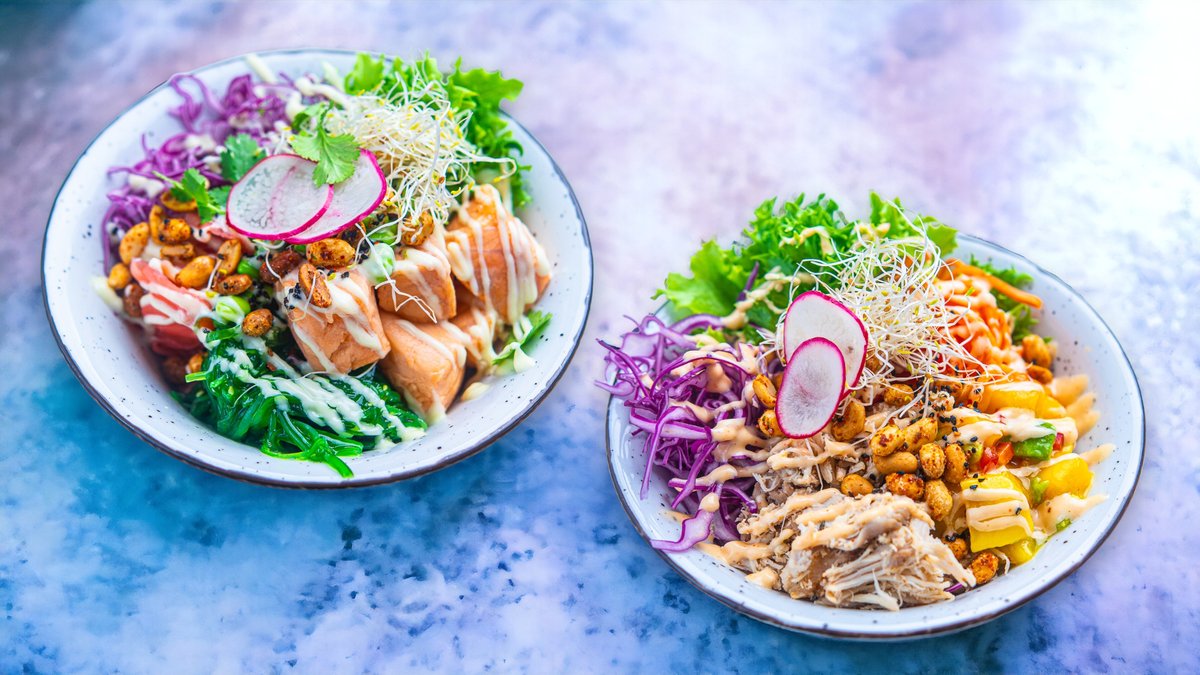 Soe riis, vürtsikas marineeritud tofu, sojaoad, avokaado, redis, roheline salat, punane kapsas, värske, kurk, marineeritud ingver, maapähkli furikake, lutserni idandid, koriander, vegan wasabi majonees Toiteväärtus: 635 kcal (SV: 46,9/ V: 22/ R: 38,2) Toiteväärtus muutub kui vahetada kaste jogurti-ürdikastme vastu või valida riisi asemel suvikõrvitsa nuudlid.