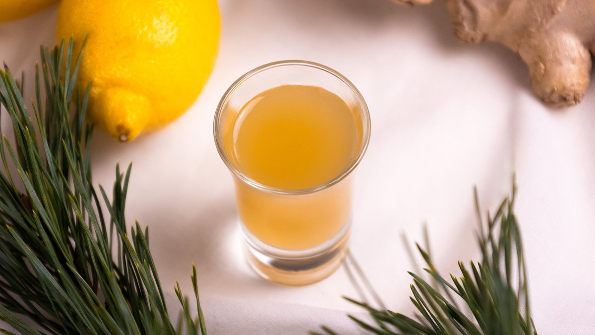 Värskelt pressitud mahl + terviseshot (ingver, mesi, sidrun)