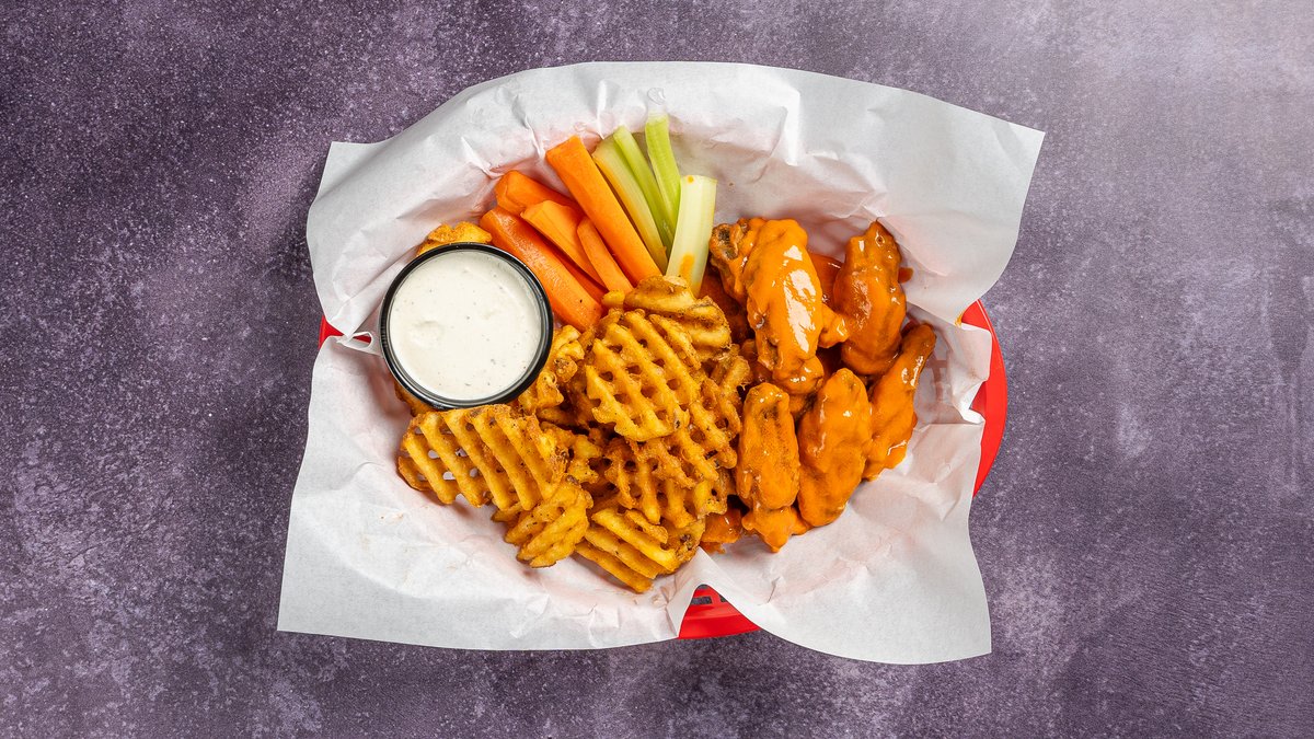 Vastupandamatu kombinatsioon 10 krõbedast kanatiivast, kuldpruunidest vahvlifriikartulitest, värsketest krõmpsuvatest köögiviljadest ning valikust maitsvatest kastmetest ja kreemjatest dippidest. Täiuslik maitse ja krõmpsuvuse kombinatsioon!