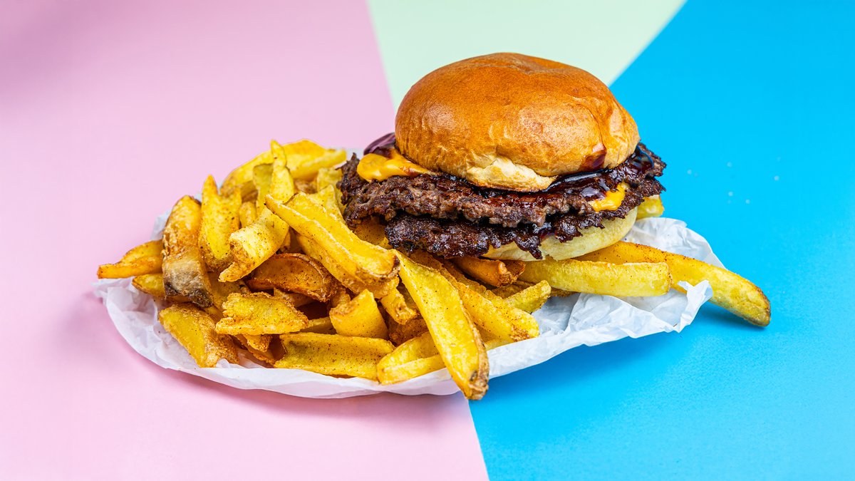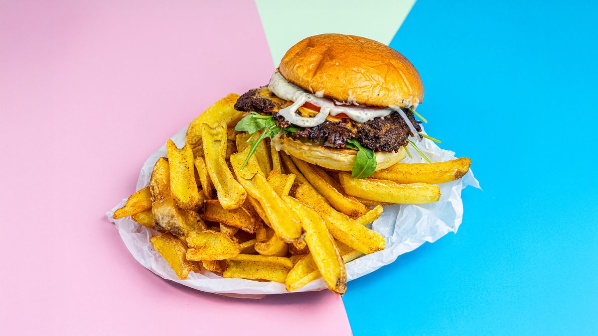 Trühvli-majoneesi Peekoni Burger, friikartulid, ketšup