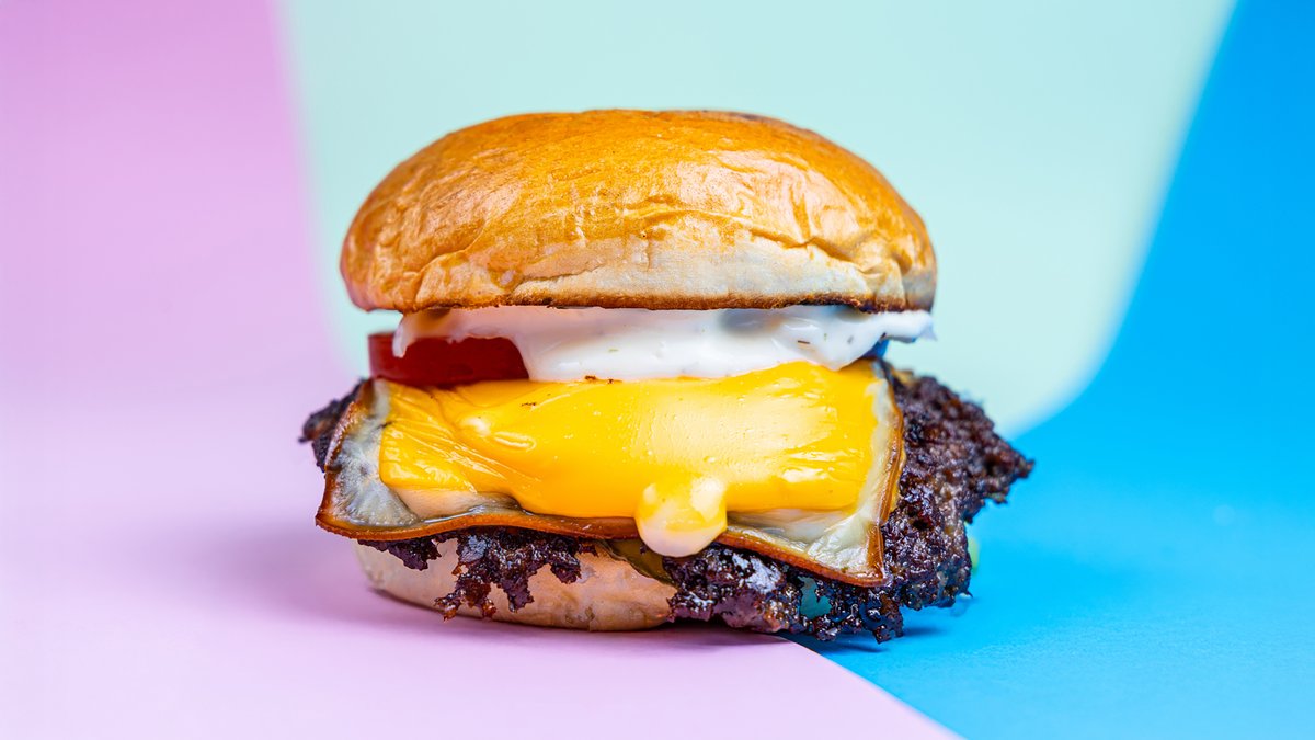 sai, praetud sibul, 2x veiselihakotlet, 2x cheddari juust, majakaste