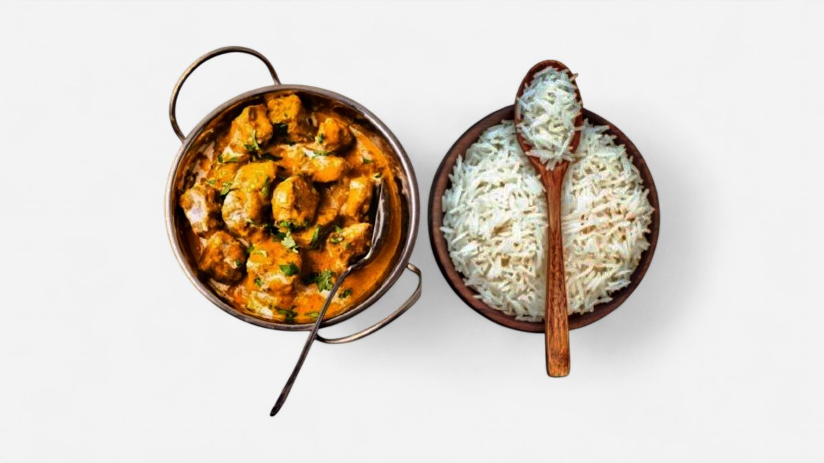 Õrn lambaliha mango karrikastmes, koor. Serveeritakse riisiga.