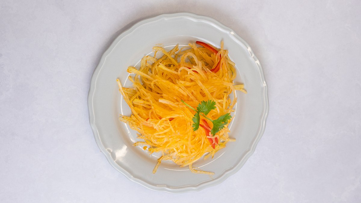 Hapukas ja vürtsikas kartulisalat 土豆丝