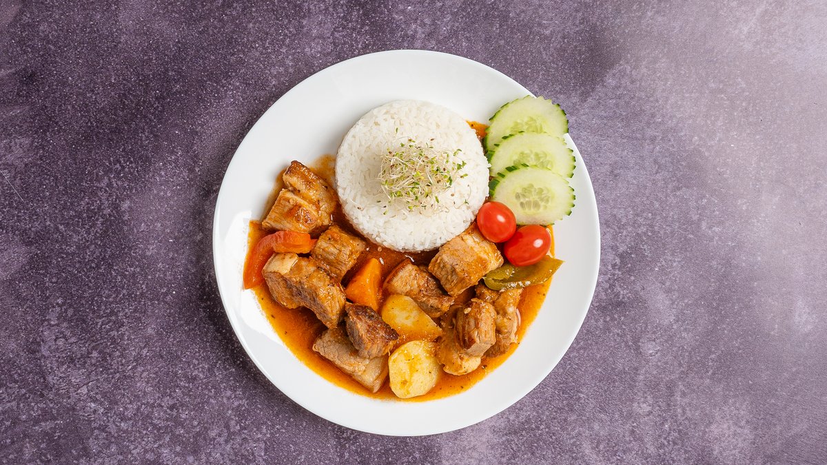 Filipiini stiilis rikkalik sealihahautis jasmiiniriisiga