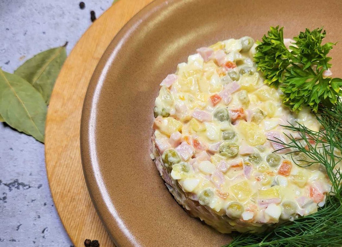 Kartul, sink, värske / marineeritud kurk, porgand, roheline hernes, majonees, muna