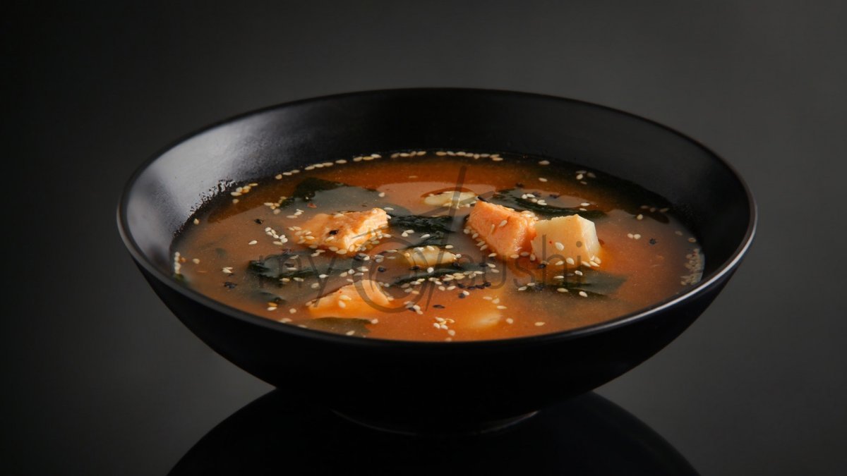 Jaapanipärane supp lõhe, merevetika ja seesamiseemnetega