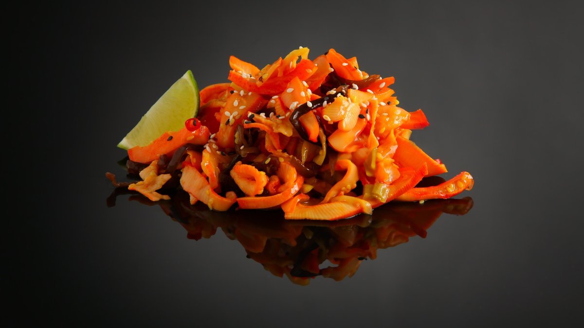Kalmaarisalat tšilli ja seesamiseemnetega