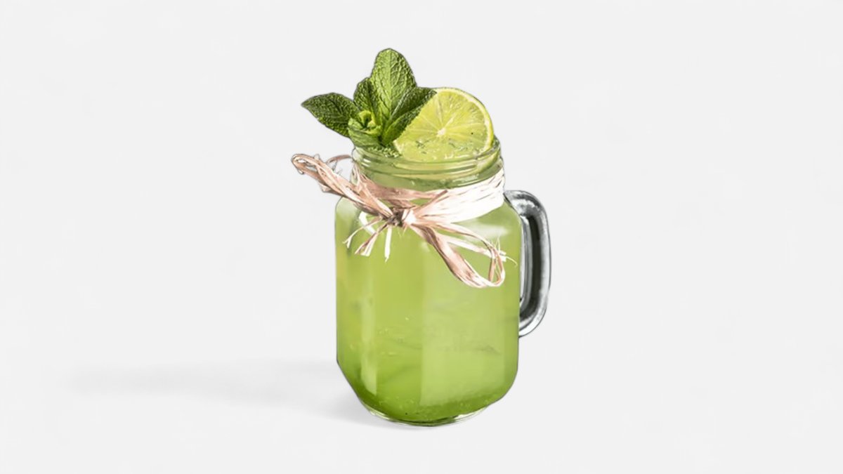 Mustikapüree, piparmünt, sidrun, rohelise õunapüree, mullivesi