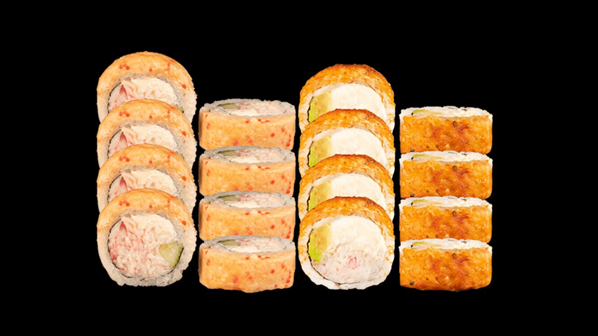 Krabi ja lõhe tempura 8 tk + Rioto 8 tk + Kioto 8 tk
