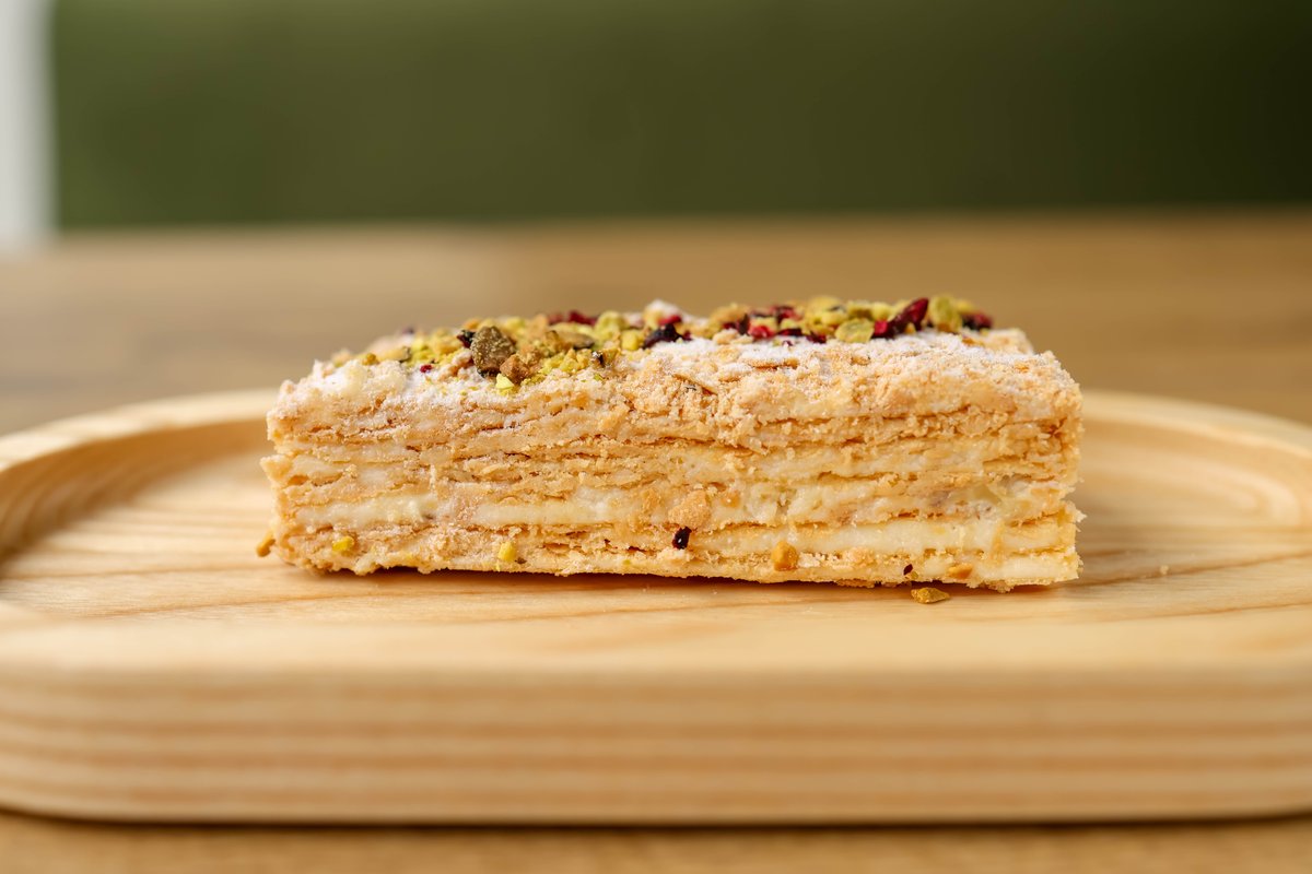 Krõbe napoleoni kook pistaatsiakreemiga