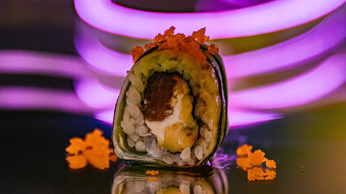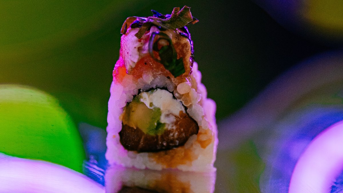 Sees: avokaado, kurk, tempura krevett Peal: vürtsikas lumekrabi, põletatud tuunikala, unagi, kimchi kaste, röstitud sibul