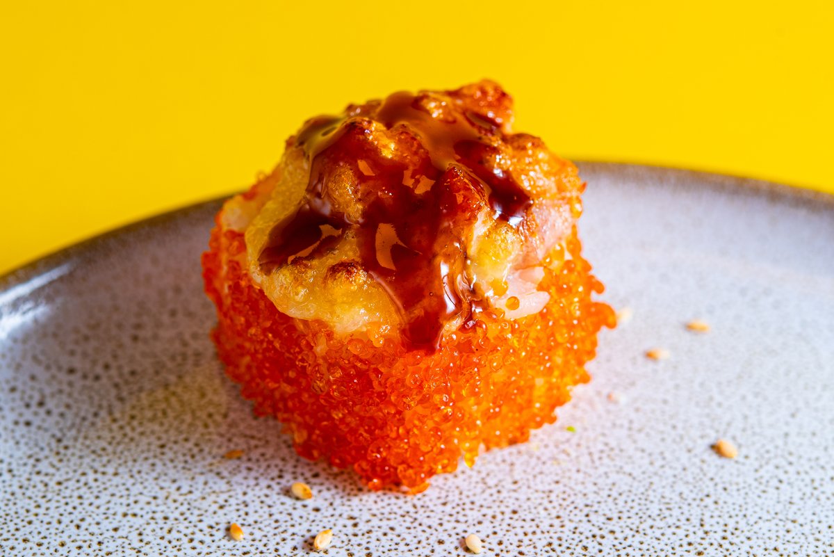 Lumekrabi, toorjuust, lendkalamari Snow crab, cream cheese, flying squid roe