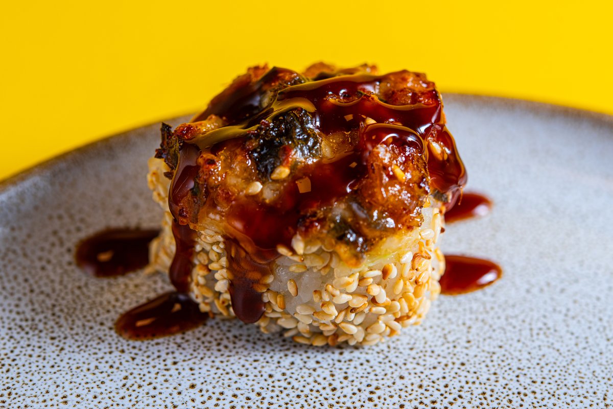 Grillitud angerja gunkan, teriyaki kaste, seesamiseemned Grilled eel gunkan, teriyaki sauce, sesame seeds