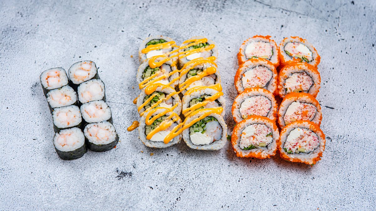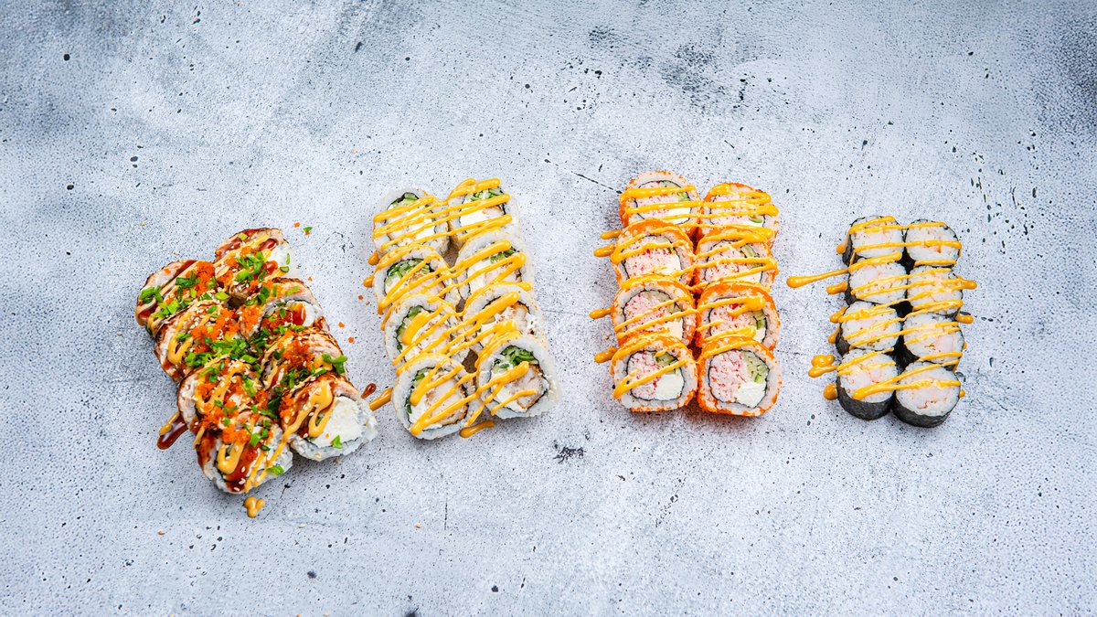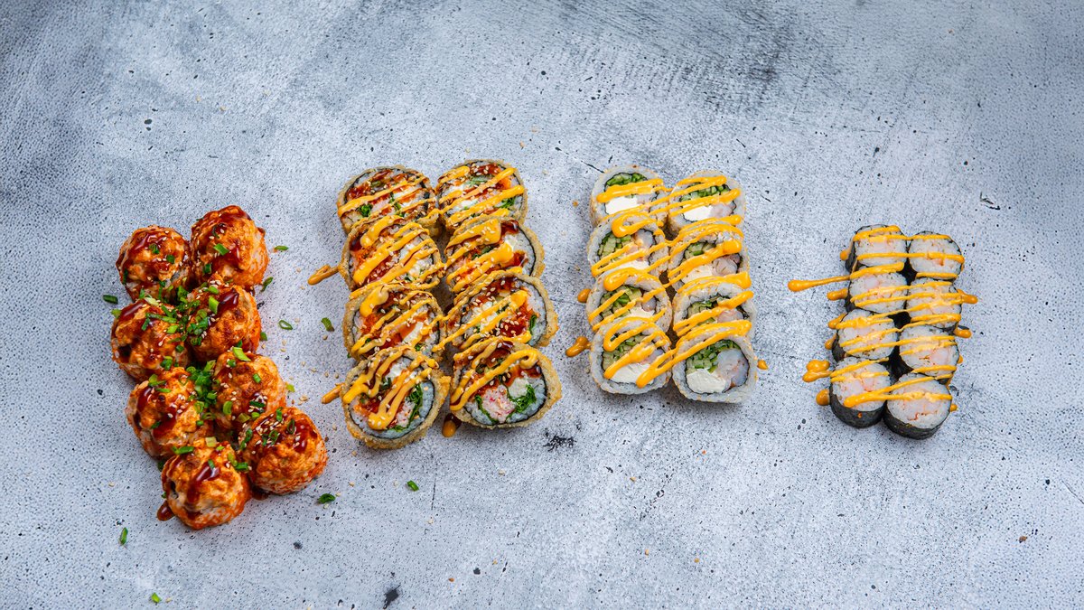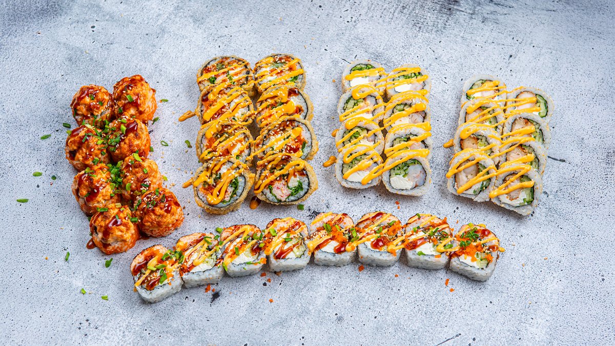 Flamed krab 8tk Ebi maki aioliga 8tk Hosomaki krevetiga 8tk