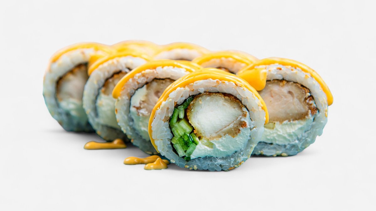 Shoga maki : avokaado tempura, kurk, sriracha, unagi, ingveri-küüslaugu aioli, tomat, rukkola