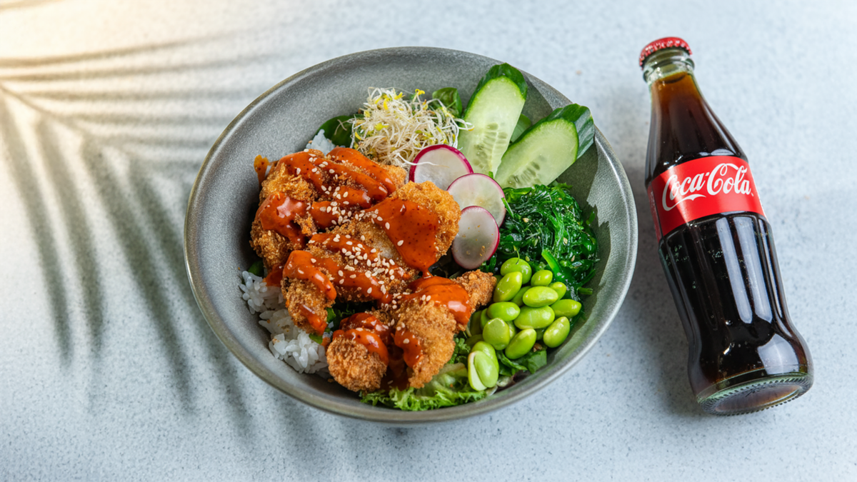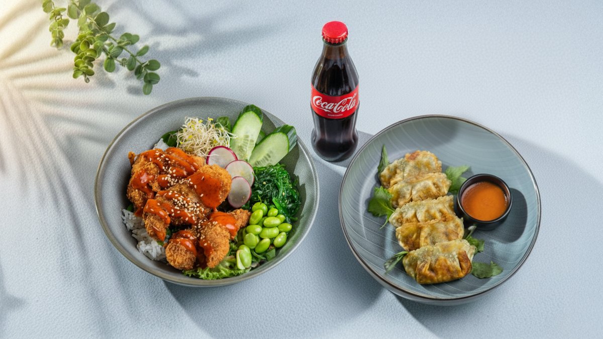 Krõbekana-don + gyoza kanga + karastusjook