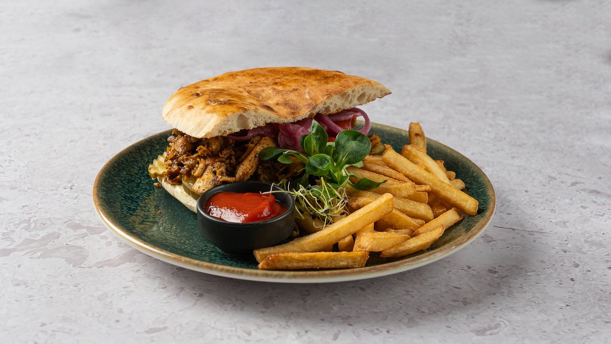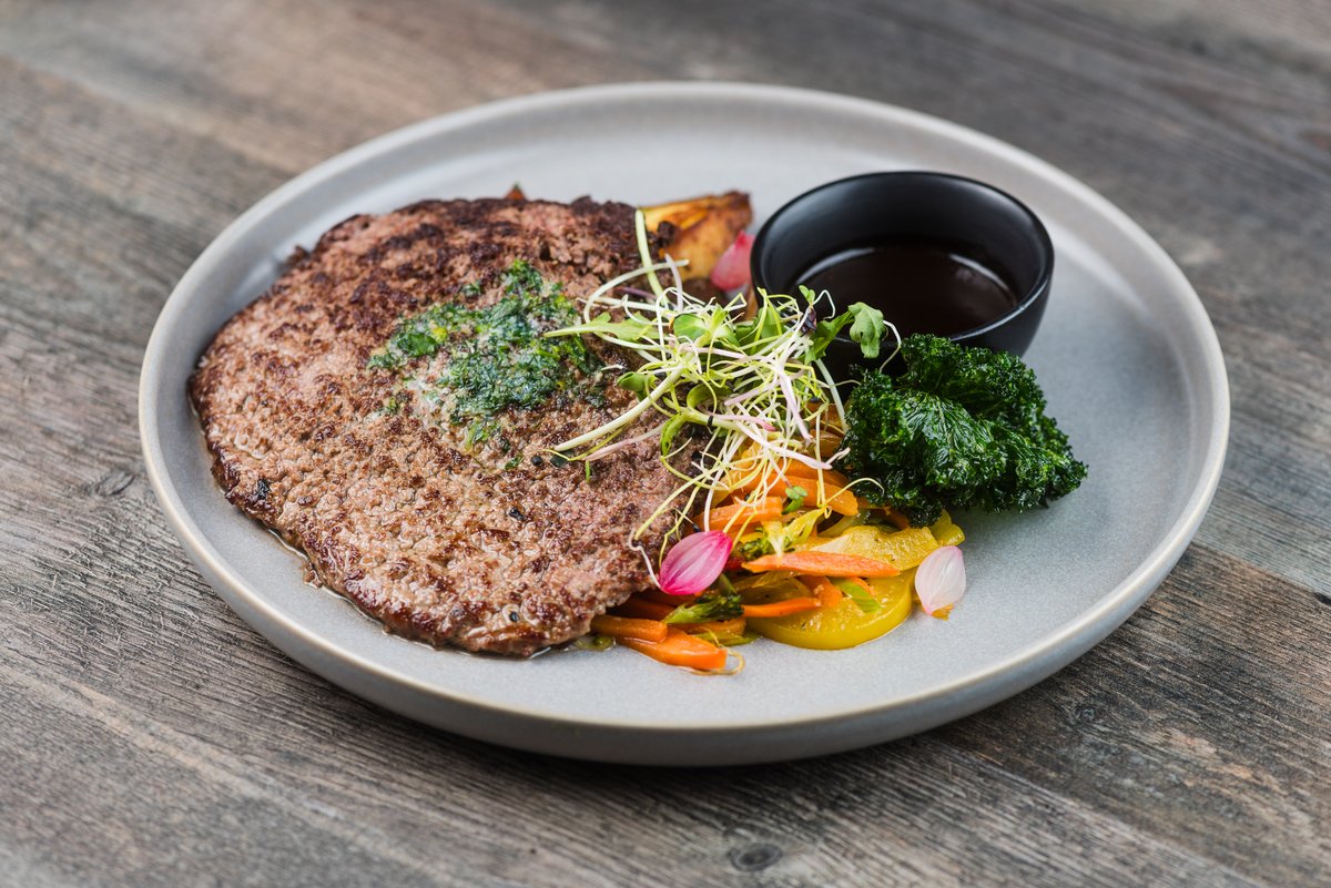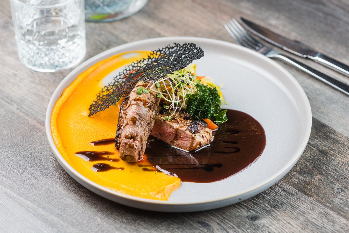 Lehtpihv veisesisefileest küüslaugu-ürdikartuli ja punaveinikastmega