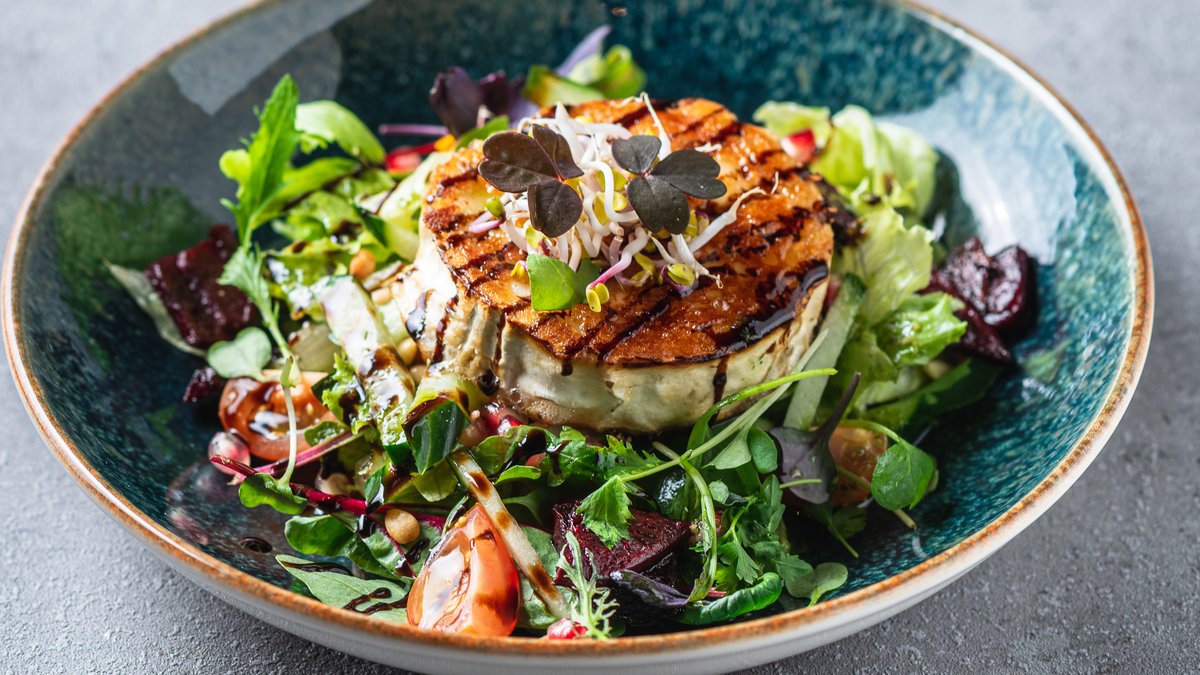 Kuumsuitsulõhe salat krõbedate kartulite ja kodujuustukastmega