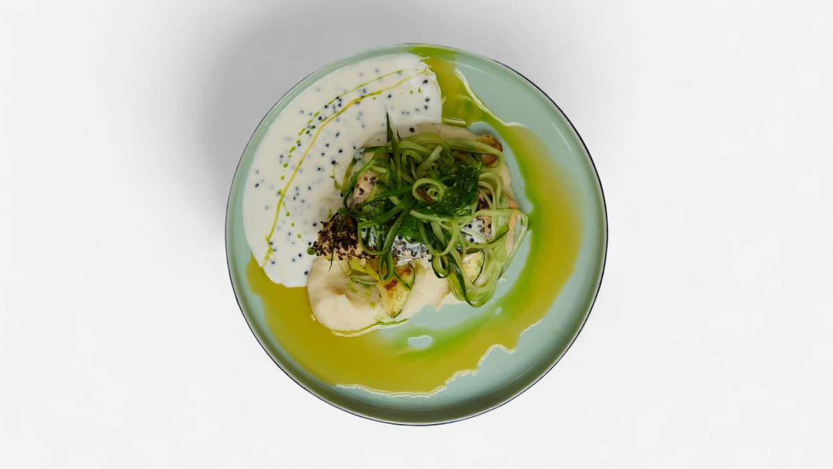 Mati kalaloog lillkapsa–juurselleripüreega, sooja köögiviljasalati, valge veini kastme ja wakame–kurgisalatiga