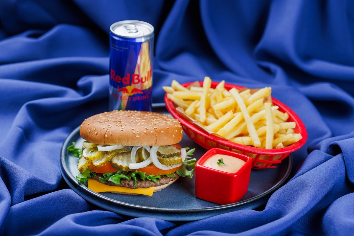 Veiseburgeri Combo + Red Bull (250ml)