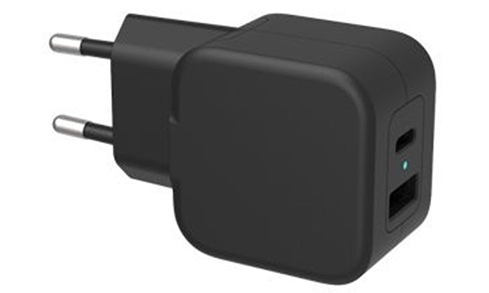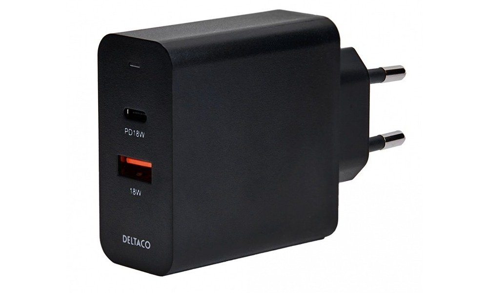 21,00 €DELTACO USB wall charger with dual ports and PD, 1x USB-A, 1x USB-C, PD, 36W, black, USBC-AC137