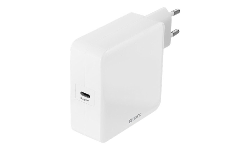 26,60 €DELTACO USB wall charger, 1x USB-C PD, 65 W, white USBC-AC140 for laptops, tablets, phones with ulta fast charging, PD