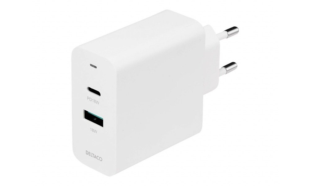 16,80 €DELTACO USBC-AC138 - Power adapter - USB wall charger with dual ports and PD, 1x USB-A, 1x USB-C, PD, 36W, white