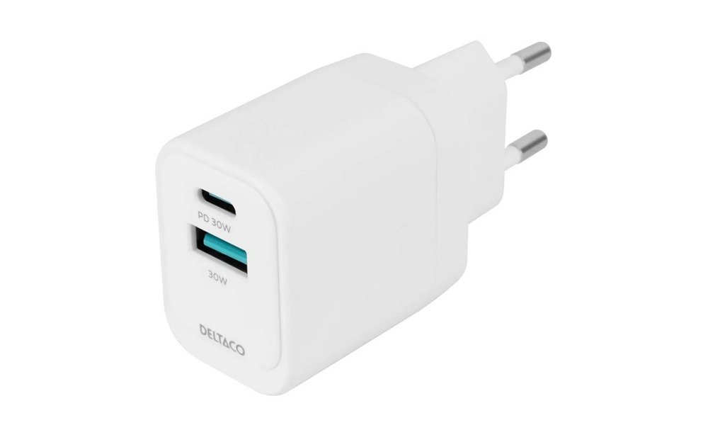 16,80 €USB GaN wall charger DELTACO, 1x USB-A 18, W 1x USB-C PD 30 W, PPS / USBC-AC155 / 1903158