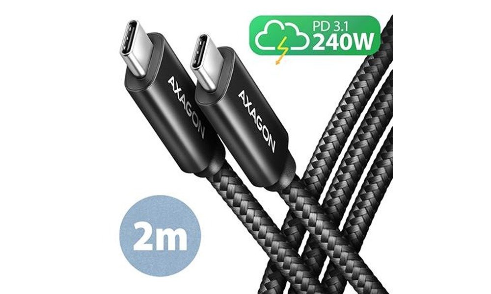 12,60 €AXAGON Data and charging USB 480Mbps cable, 2.5 m | BUCM2-CM20AB | USB-C to USB-C 240W 5A PD3.1 QC4+