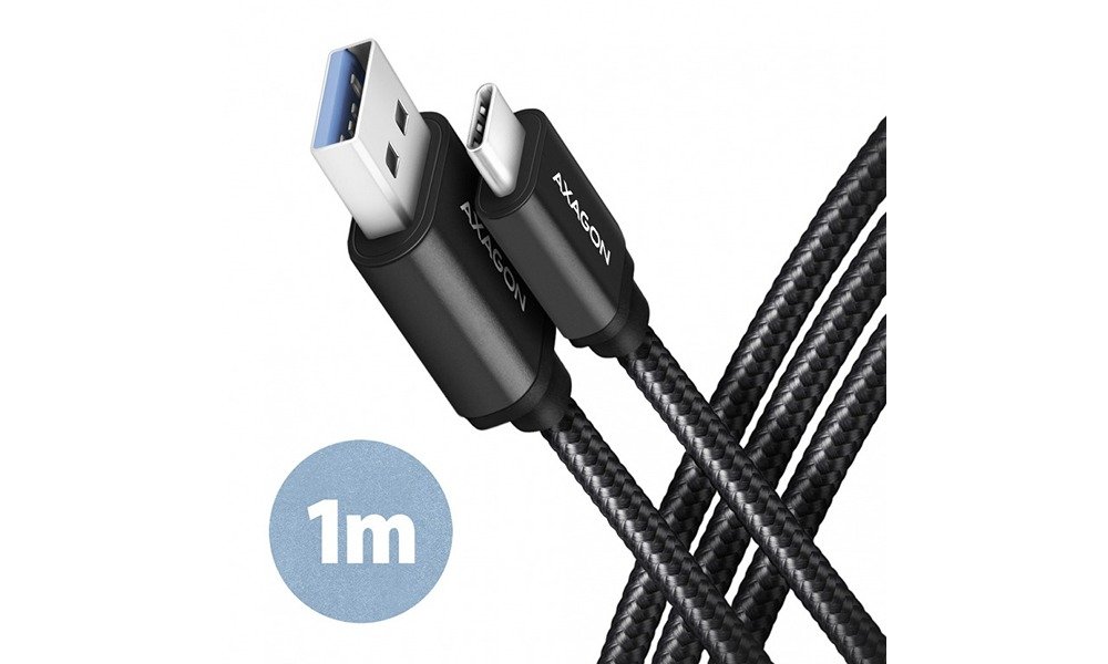 9,10 €AXAGON Data and charging USB-C USB 3.2 Gen 1 cable, lengh 1 m. 3A. Black braided. 5Gb/s