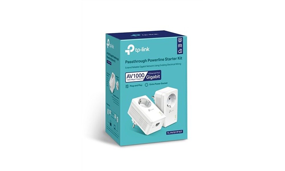 TP-LINK AV1000 Gigabit Passthrough Powerline Starter Kit 10/100/1000 Mbit/s Ethernet LAN (RJ-45) ports 1 No Wi-Fi Extra socket (TL-PA7017PKIT)