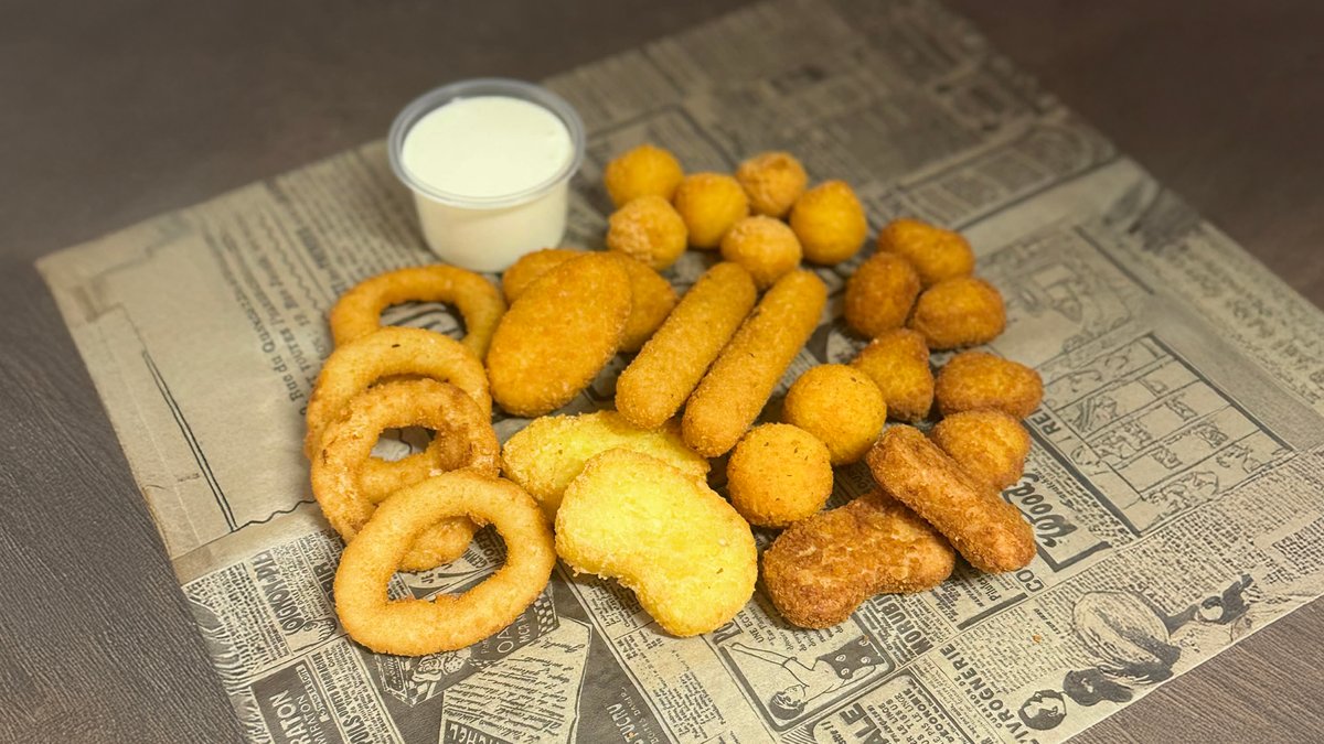Mix kahele inimesele. Sibularõngad,justupallid,kartulipallid, naggitsad, kartulinaggitsad, jalopeno-toorjuusunaggitsad (vürtsikad), mozzarellapulkad,kanapopcorn, kaste 2tk,