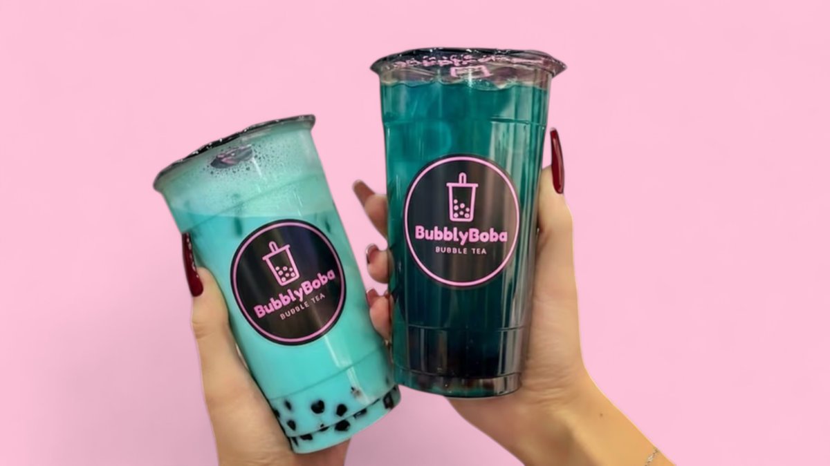 Piima või rohelise teega litši ja blue coral'i maitseline mullitee tapiokiga. Joogiga tuleb kaasa üks joogikõrs.