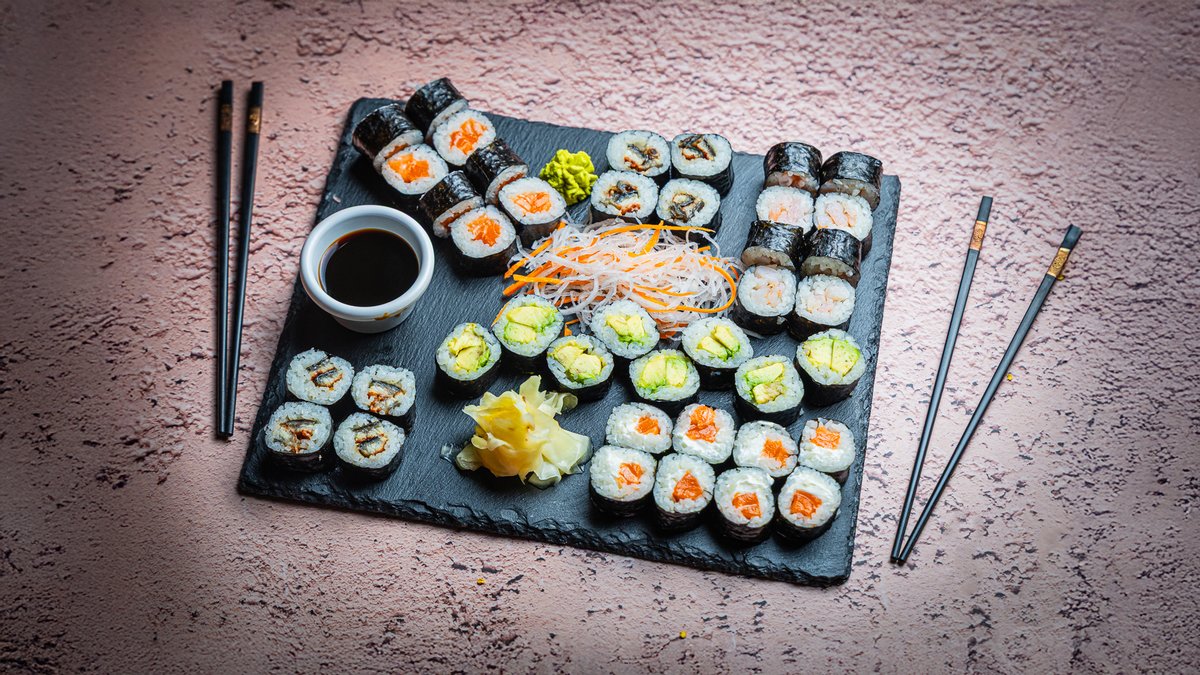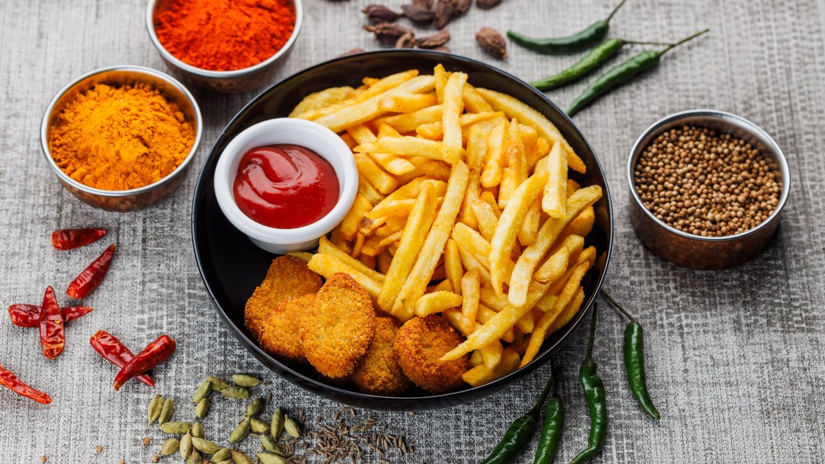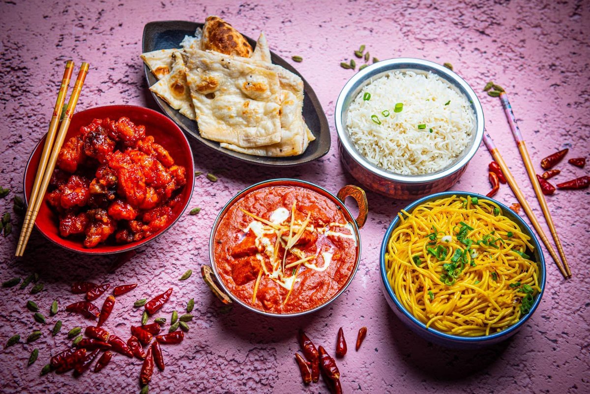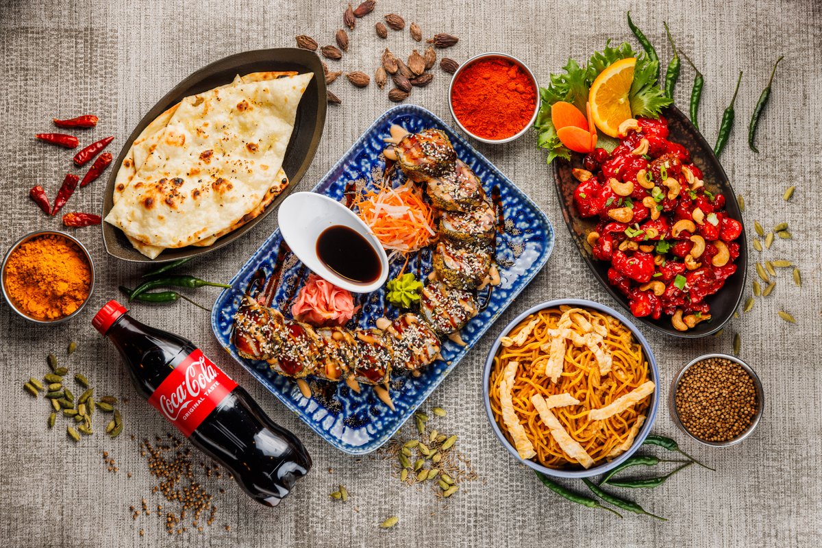 Itaalia pitsa india vürtsidega, burgerid, tempura, krõbekana ja salatid.