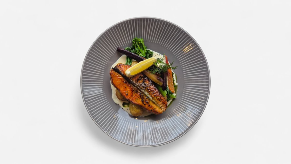 Lõheliblikas, koorega kartul, wokitud köögiviljad, bimi, hollandi kaste