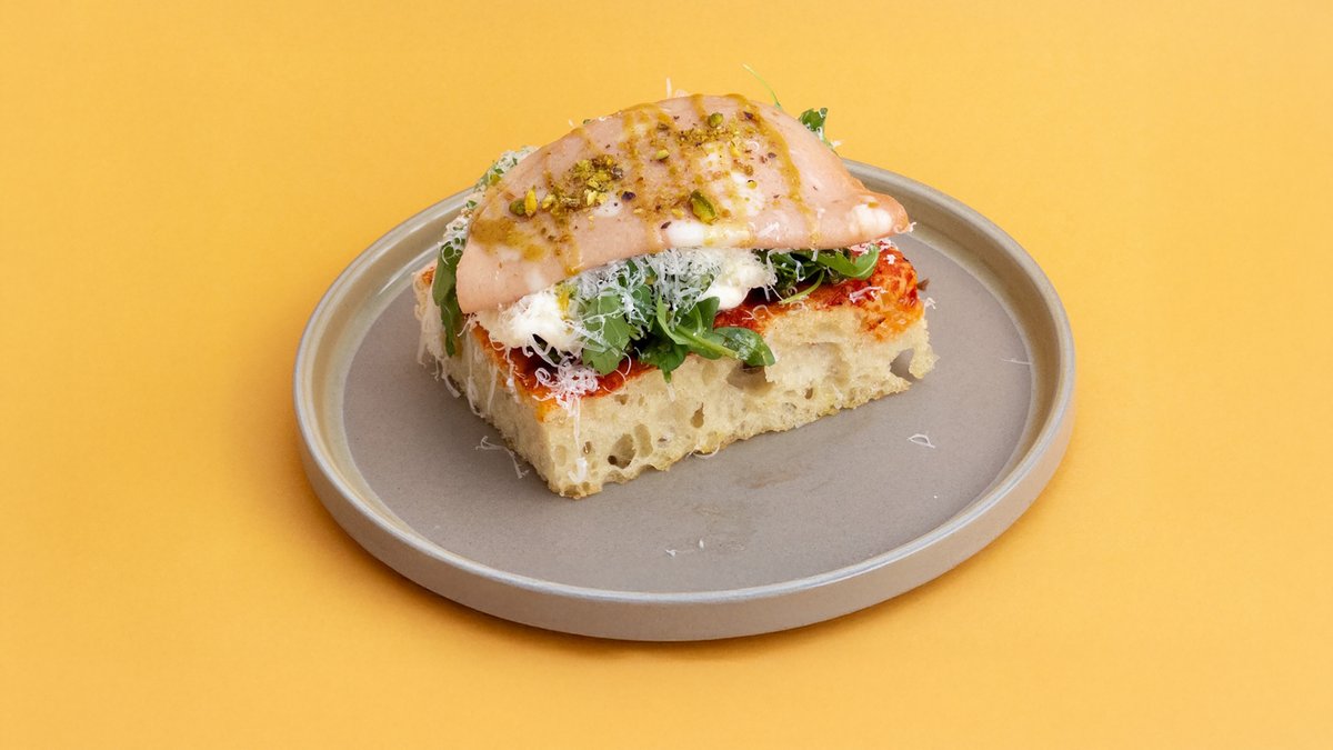 focaccia, mascarpone, mortadella, parmesan, mozzarella, pistaatsia aioli, pistaatsiapähklid