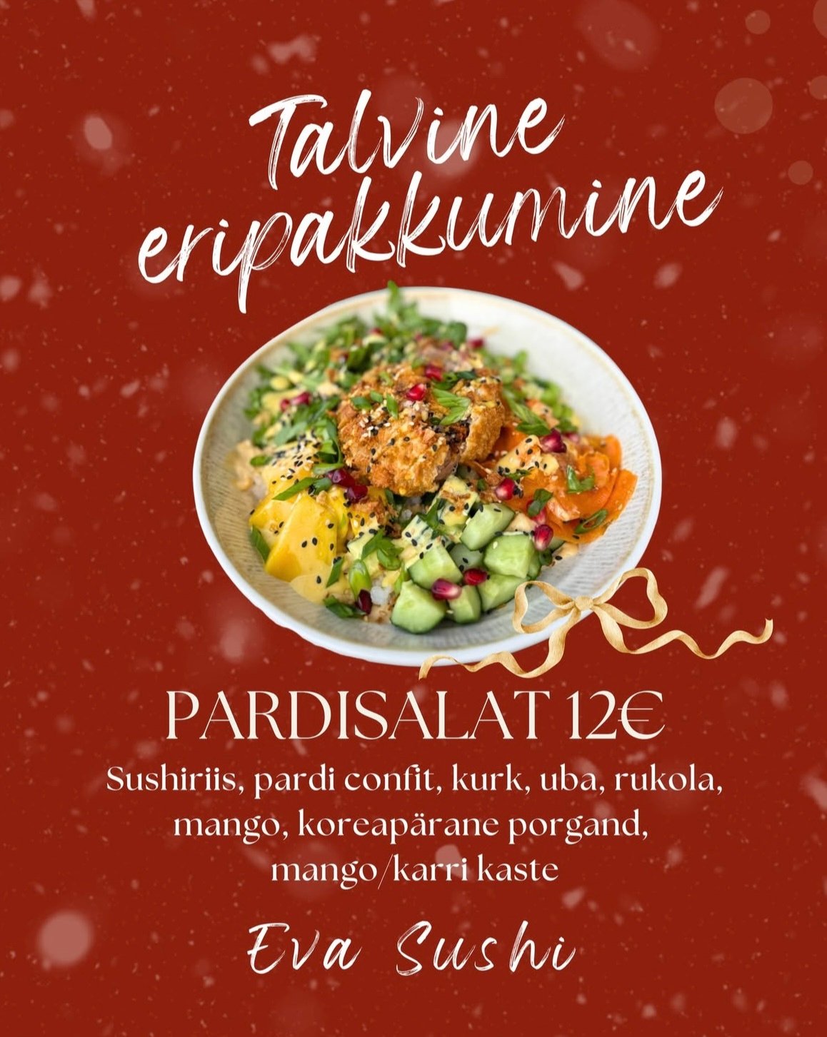 Sooja õhkkonnaga hubane sushi- ja salatikohvik kostitab Sind kõigega, mis hing ihkab. Astu läbi ning proovi meie sushimeistrite käe all valminud maitsvaid sushisid, tervislikke salateid, snäkke, koogikesi ning värskendavaid kokteile nii suurtele kui väikestele.