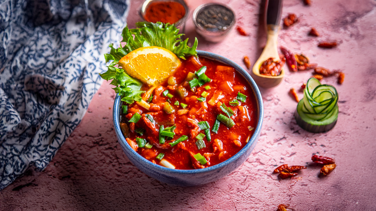 Vürtsikas ja tihke kanasupp aedviljadega Spicy chicken soup with vegetables and thick Острый и густой, куриный суп с овощами
