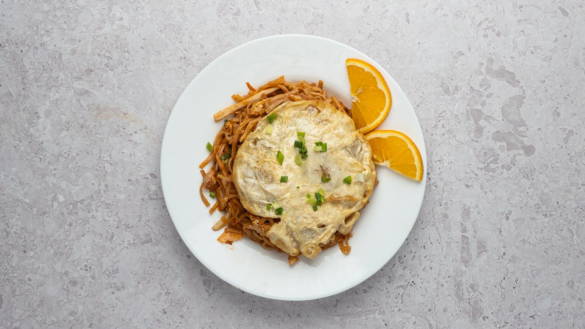 Munanuudlid, krõbekana, porgand, kapsas, muna, sojakaste, seesami seemned, meekaste