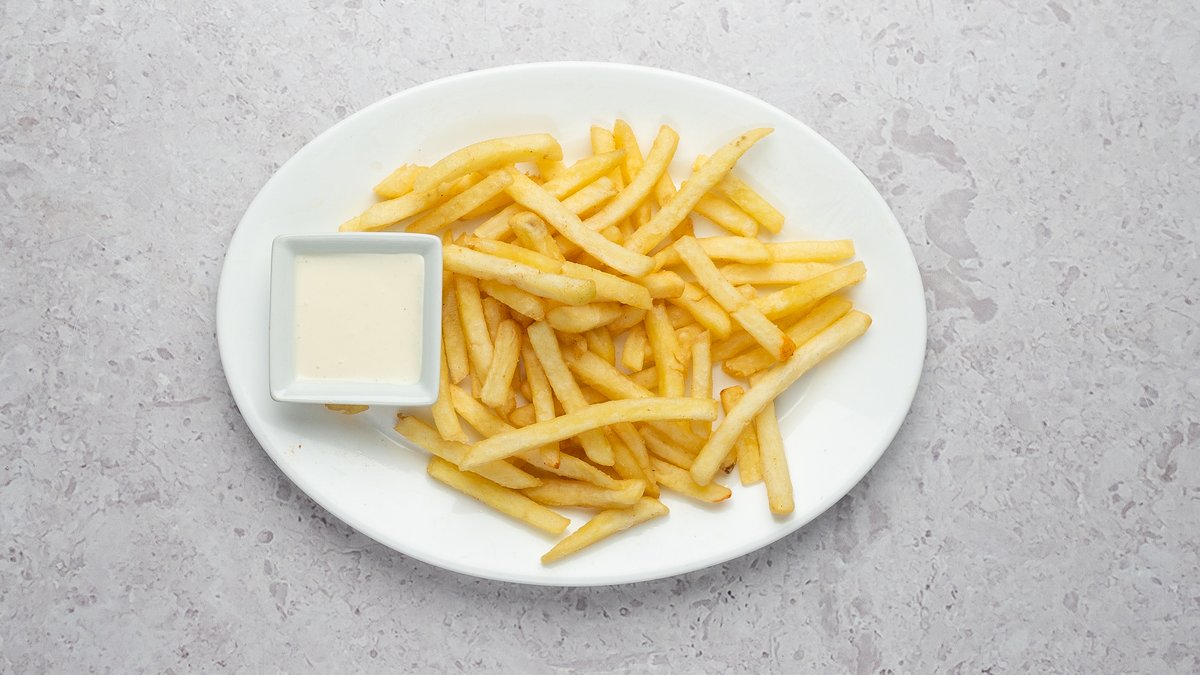 Kebabi liha, friikartulid, ja kaste