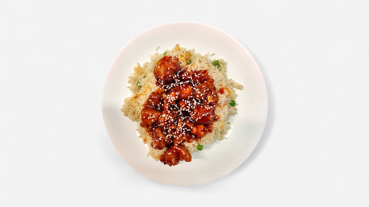 Riisi, krõbekana, porgand, muna, sojakaste, seesami seemned, meekaste