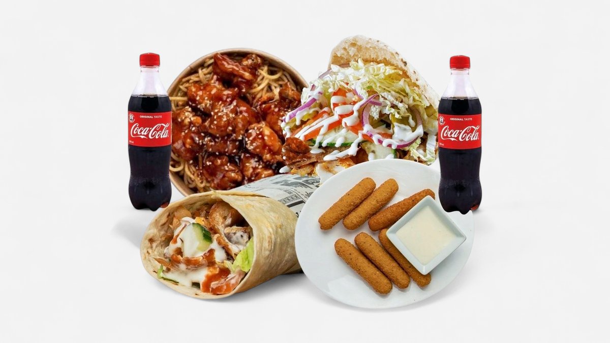 Meekana muna nuudlid + pita kebab+ Keskmine kebab wrap + 6 tk mozzarella sticks ja kaste+ 2 suur jook