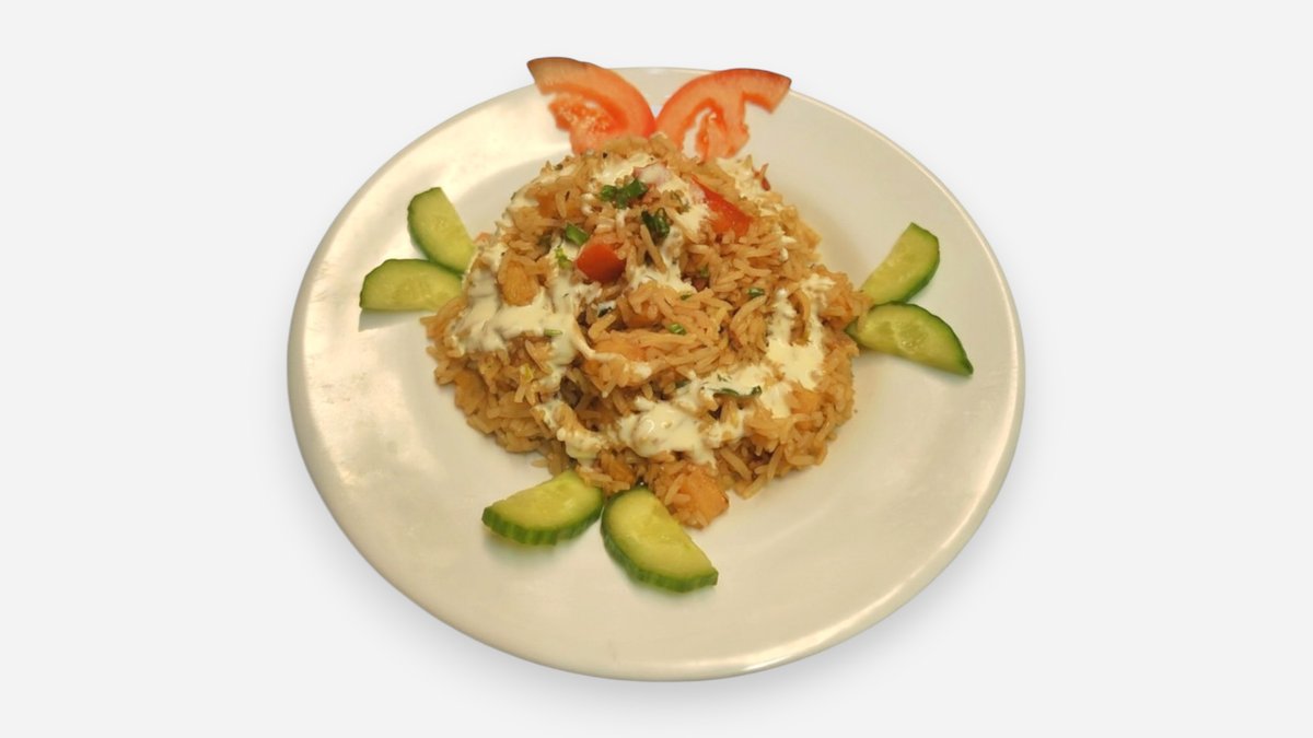 Kebabi liha, muna, nuudlid või riisi, hinna kapsas, kurk, hapukurk punane sibul, tomat
