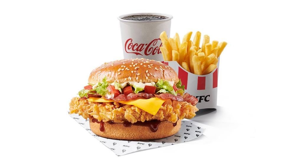 Mahlane kanafilee, peekon, marineeritud kurk, värske salat, ikooniline Kentucky Gold kaste ja cheddari juust ei jäta sind ükskõikseks. Kombinatsioon, mis paneb suu vett jooksma! Kentucky Gold Grander burger, suured friikartulid ja suur jook 0.5l