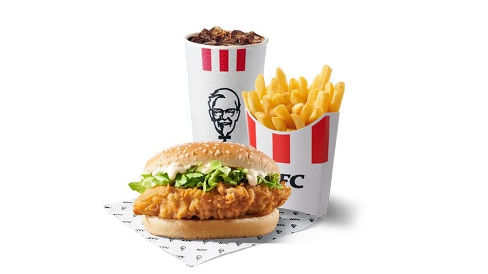 Originaalne retsept! Isuäratav kukkel, kõrgeima klassi kana rinnafilee, maitsestatud legendaarse, 11-ne maitseaine ja ürdi seguga, majonees ja salat. Fillet burger, suured friikartulid, suur jook 0.5l