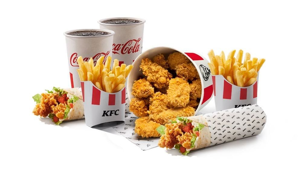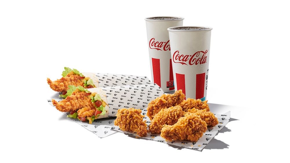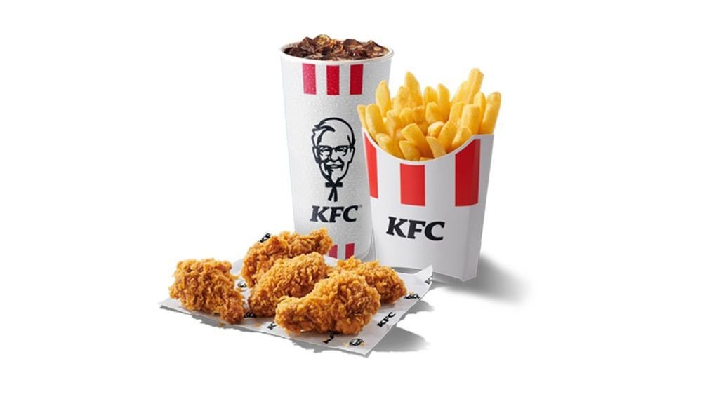 KFC Nuggets 6 tk., vürtsikad kanatiivad 6 tk. ja krõbedad kanaribad 4 tk.