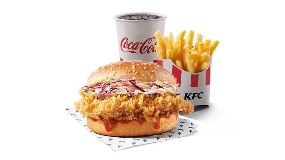 Originaalne retsept! Isuäratav kukkel, kõrgeima klassi kana rinnafilee, maitsestatud legendaarse, 11-ne maitseaine ja ürdi seguga, majonees, ketšup ja Coleslaw salat. Coleslaw burger, suured friikartulid, suur jook 0.5l